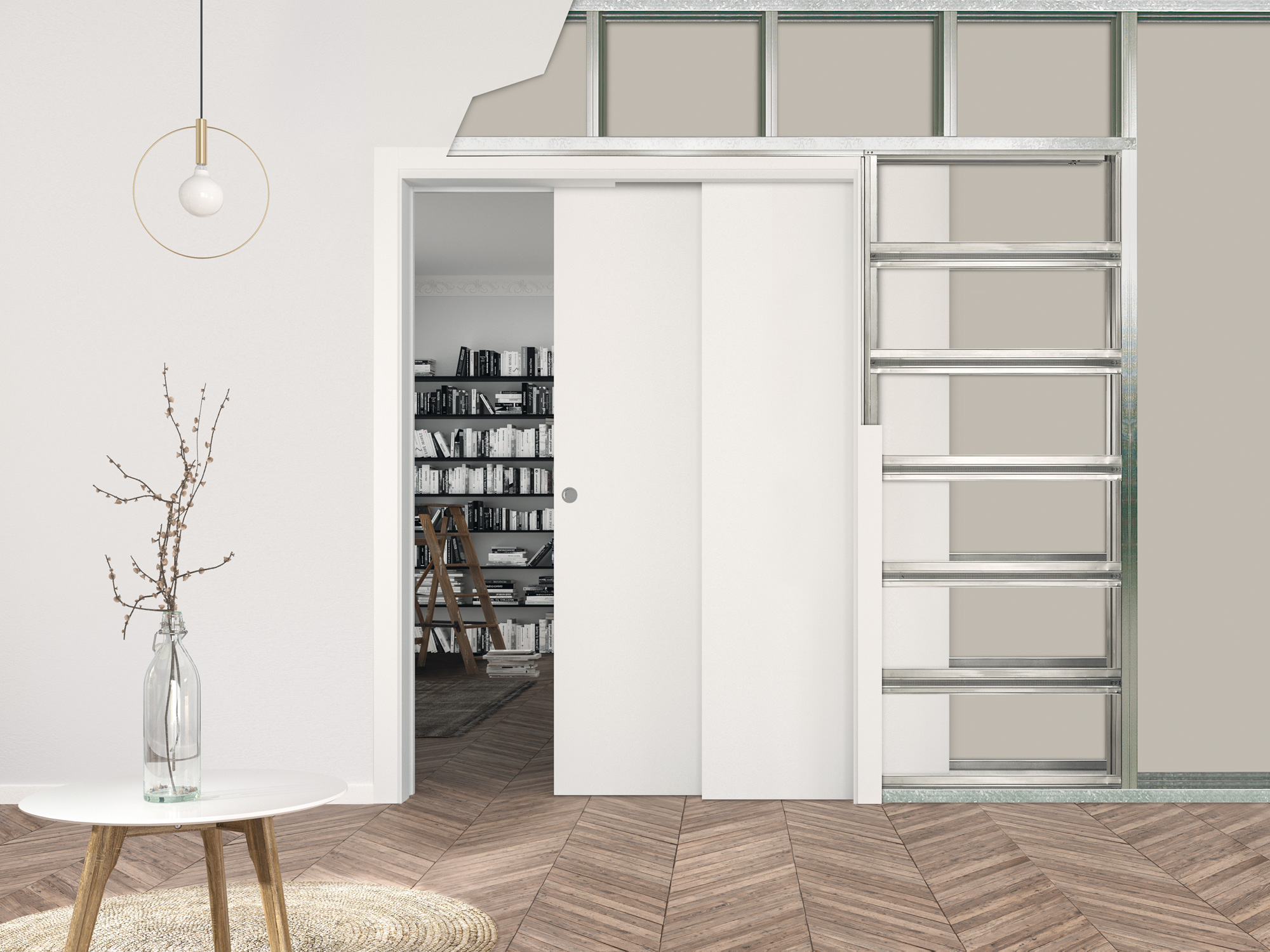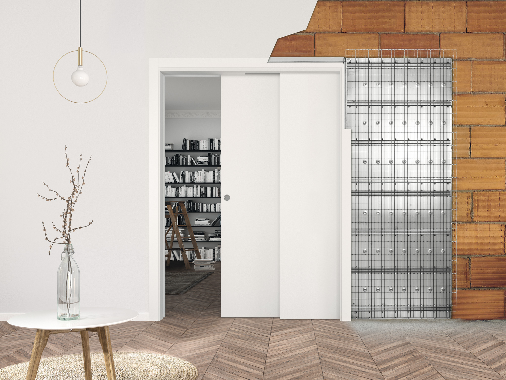 Controtelaio per due ante parallele che scorrono all’interno dello stesso vano. La soluzione per porte telescopiche.