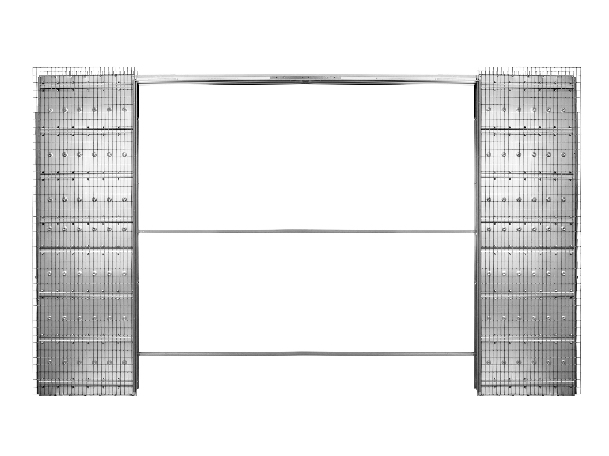 Controtelaio per due coppie di ante parallele che scorrono all’interno dello stesso vano. La soluzione per porte telescopiche.