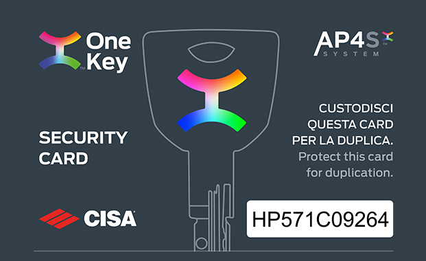 Ogni sistema ha in dotazione la Security Card. Essa contiene un codice personalizzato che permette solo al possessore di richiedere la duplica presso i 240 centri CISA Solution Partner o i 700 centri autorizzati CISA.