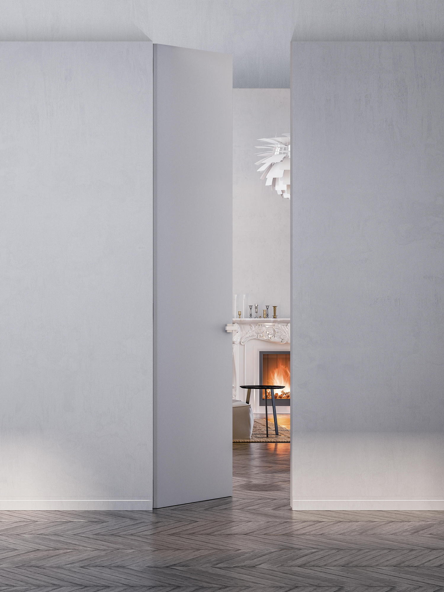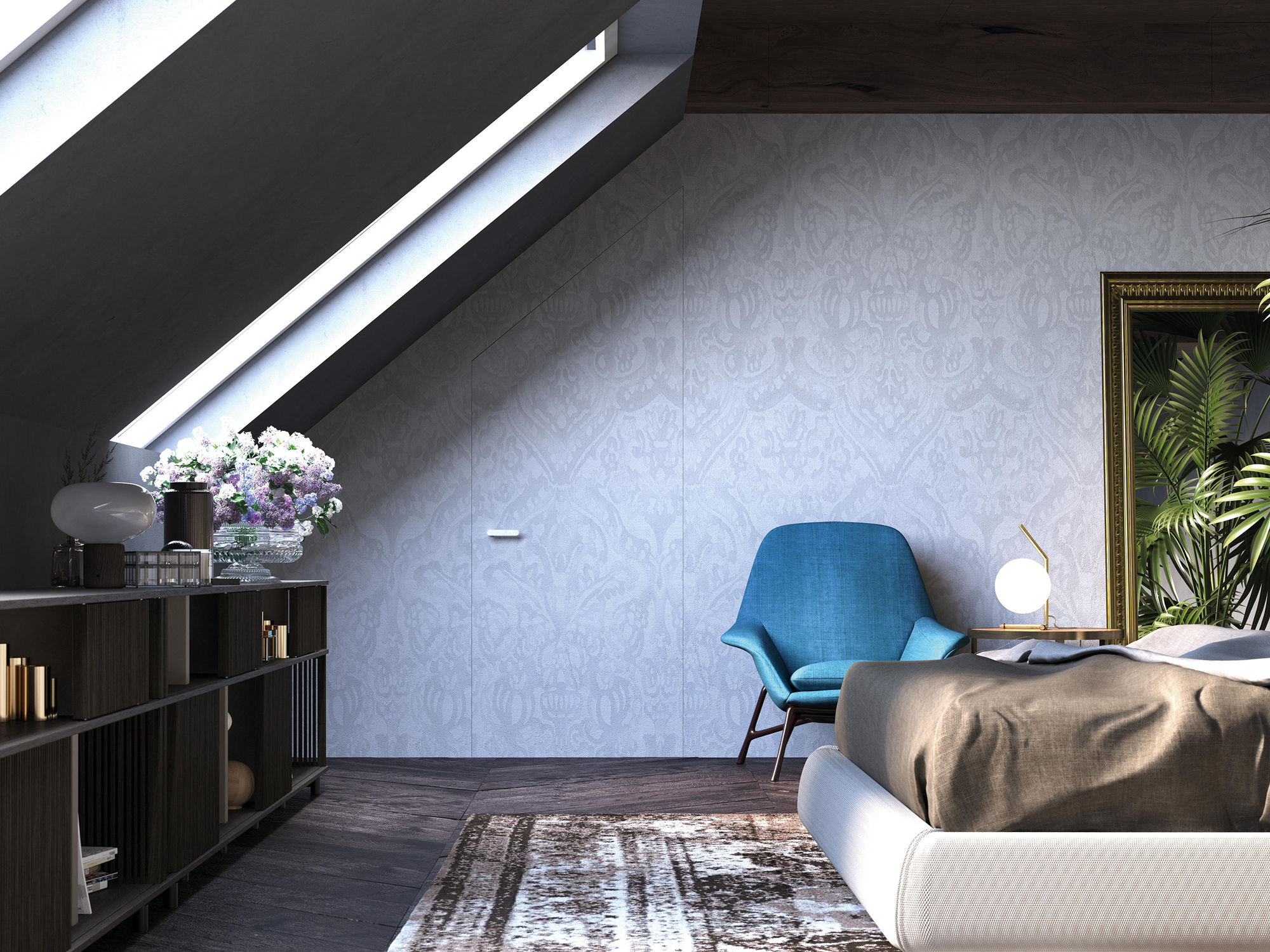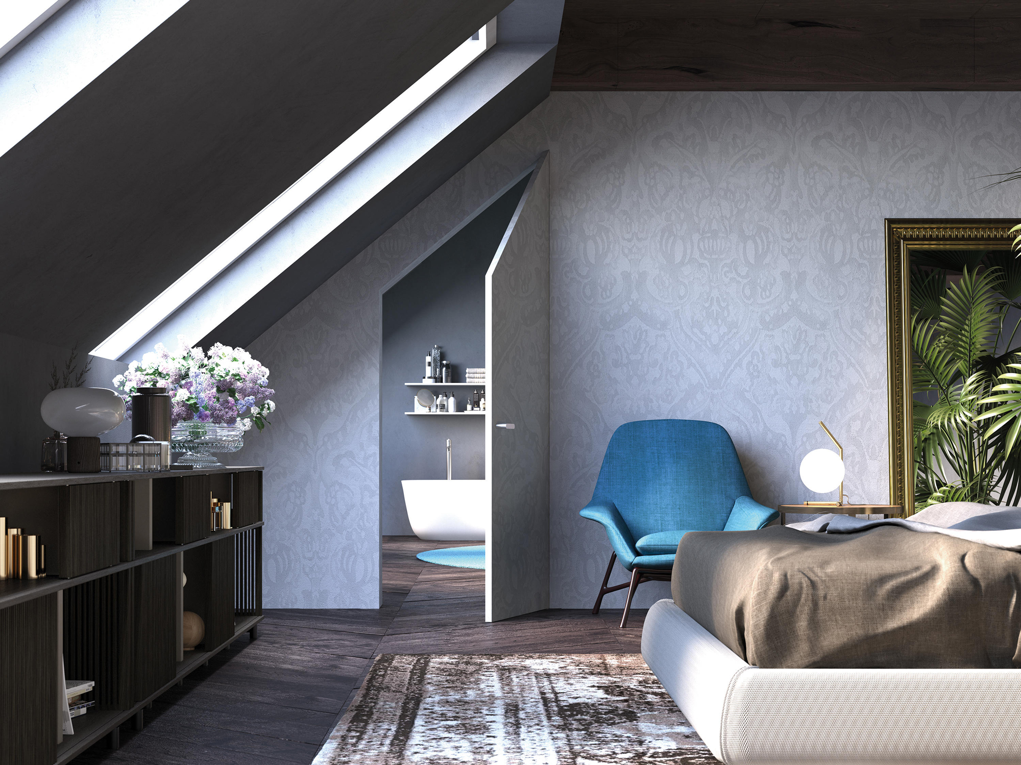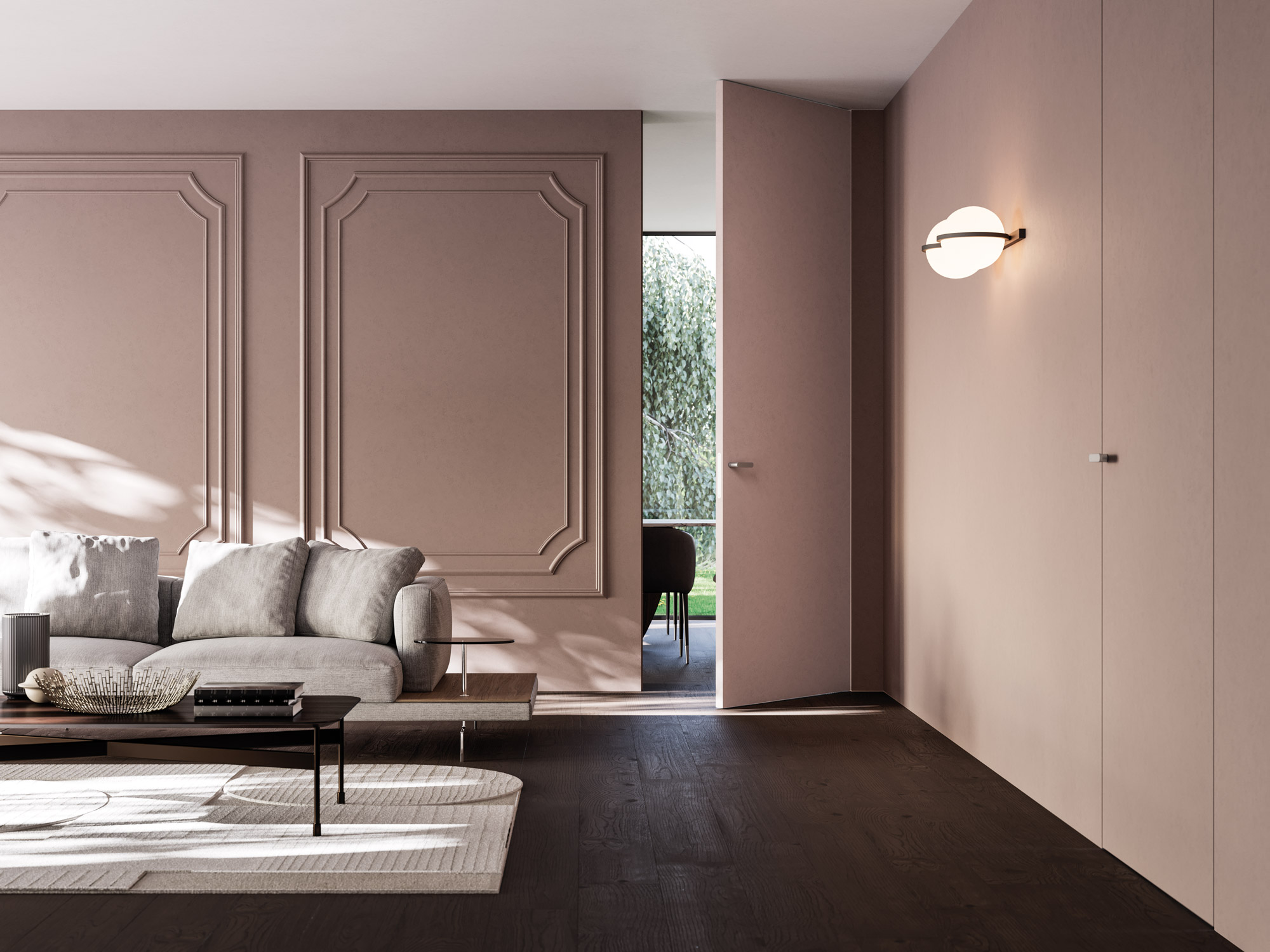 Che sia con pittura o carta da parati, è possibile personalizzare porte, sportelli chiudivano, botole e battiscopa filomuro per rispondere a ogni esigenza e arredare l’intera stanza in piena libertà.