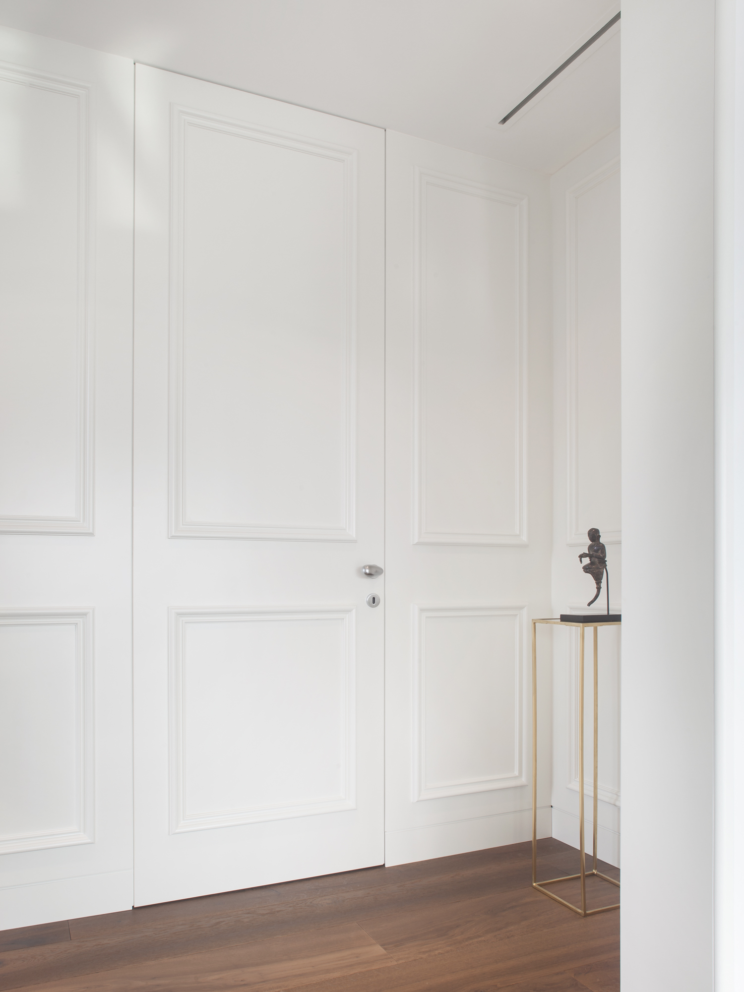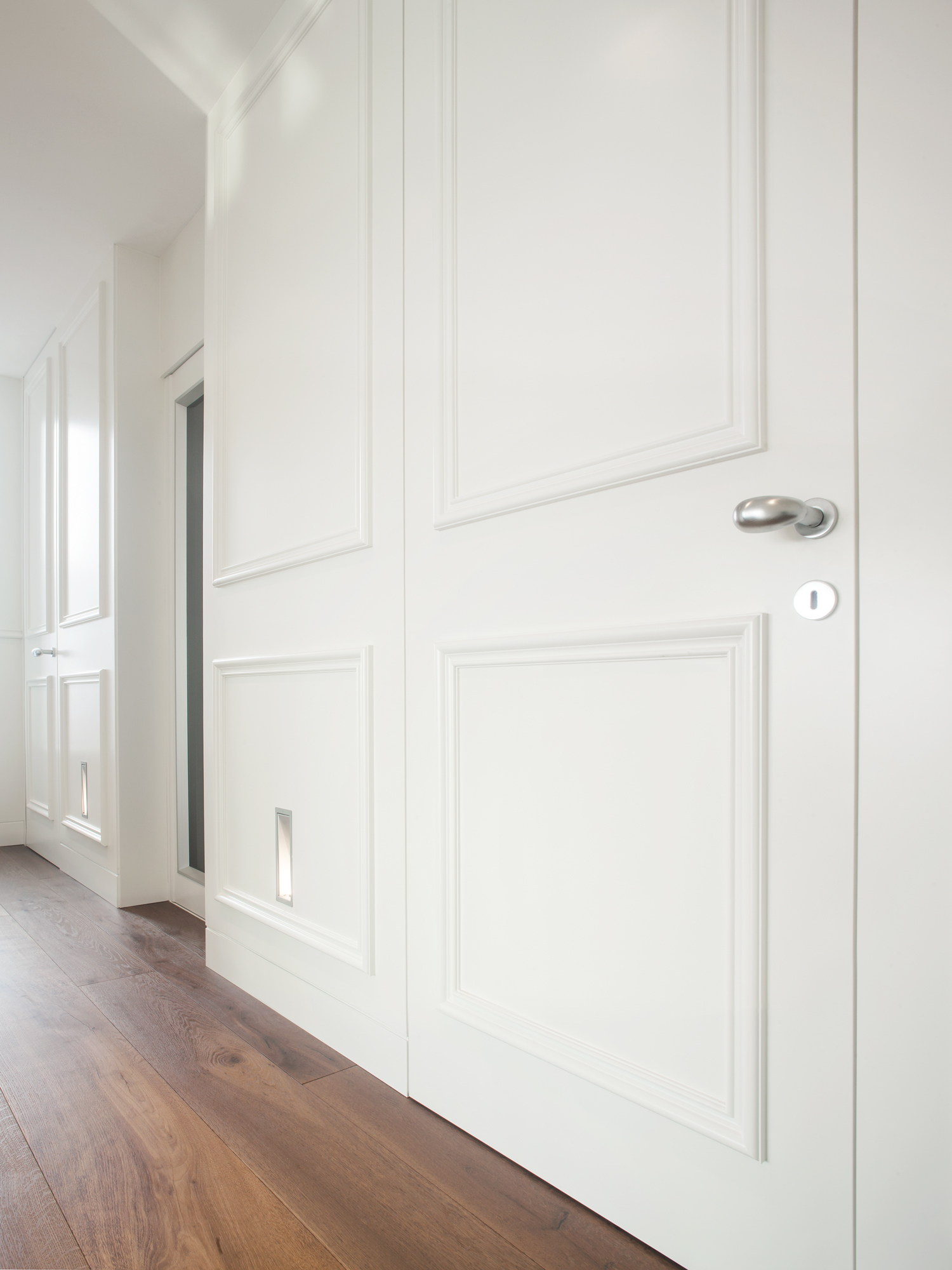 I pannelli porta in legno forniti da ECLISSE sono dotati di tirante interno regolabile, per mantenere costante nel tempo la complanarità con la parete.